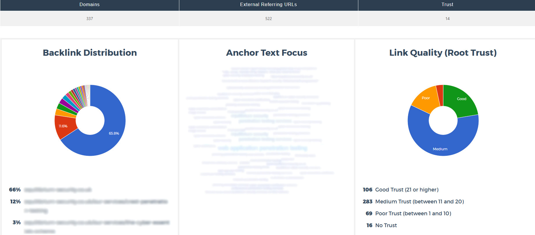 It displays your Majestic Trust Score and categorises backlinks as good, medium, poor, or none, based on their root trust values.